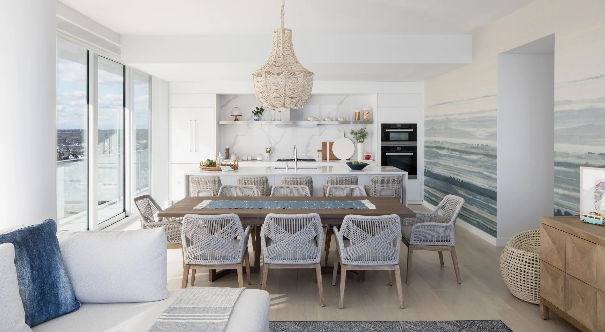 We complimented the modern, sleek design aesthetic with coastal chic furnishings to design a seaside escape for our music loving client.