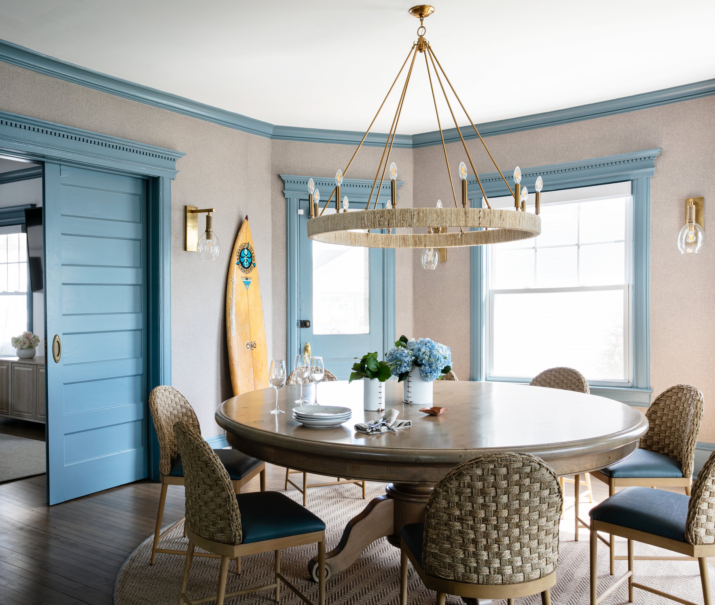 The home's color palette complements the surrounding sea and sand, while furnishings were thoughtfully selected to enhance the charming Victorian architecture—seamlessly blending their former urban life with a relaxed coastal lifestyle.